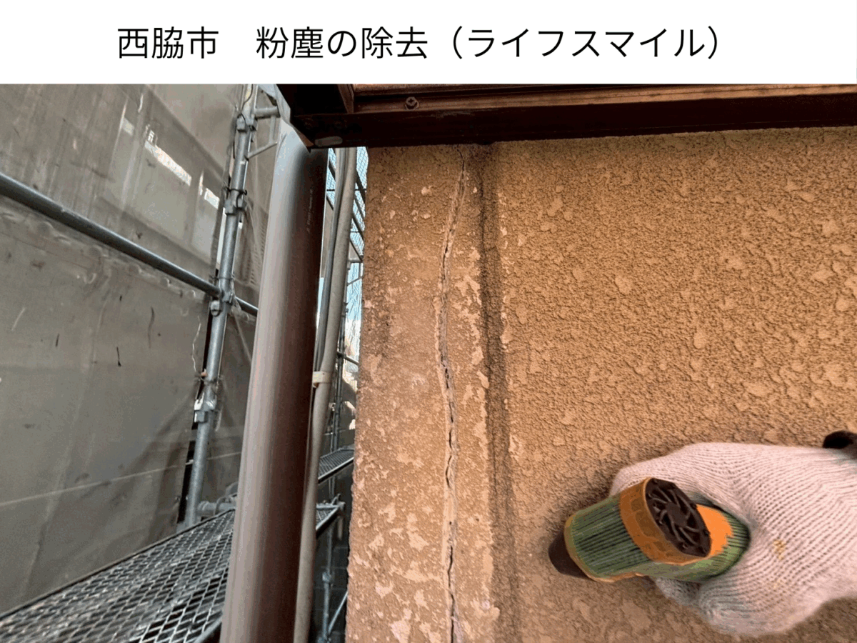 西脇市|外壁のひび割れ補修工事(下地処理〜エポキシ補修・パターン復旧まで)|株式会社ライフスマイル